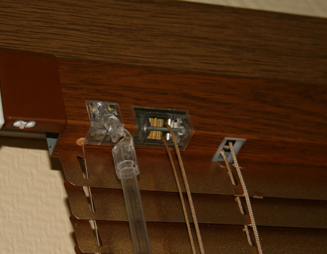 Фиксация данных видов жалюзи производится при помощи лески. Леска не позволяет изделию провисать при установке в положение проветривания, открывании и закрывании окна.