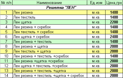 Грязеочищающая решетка «Лён» - этот тип системы, устанавливается